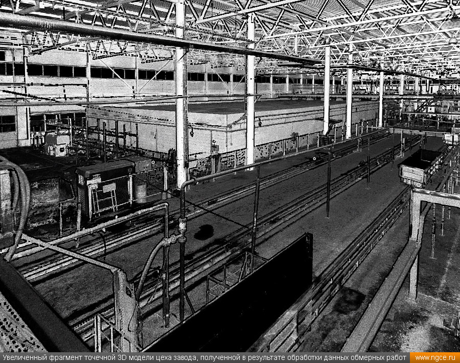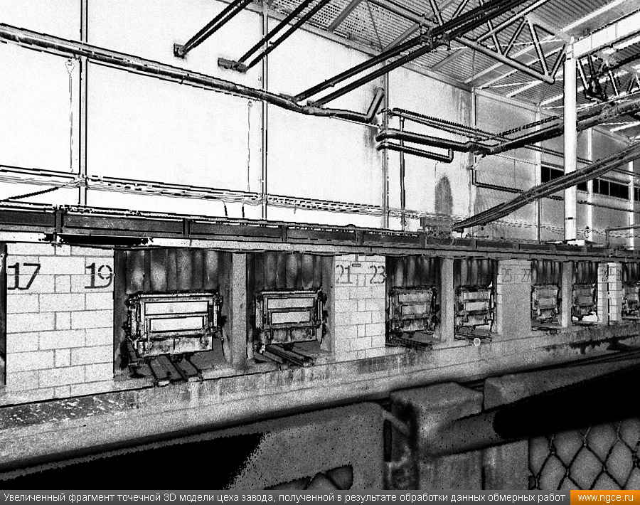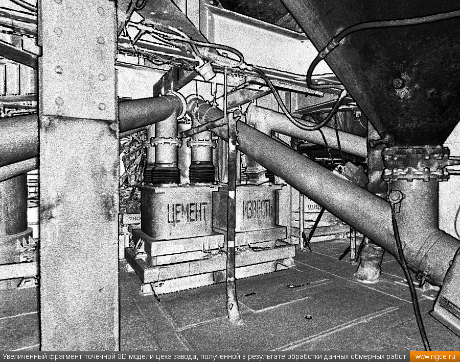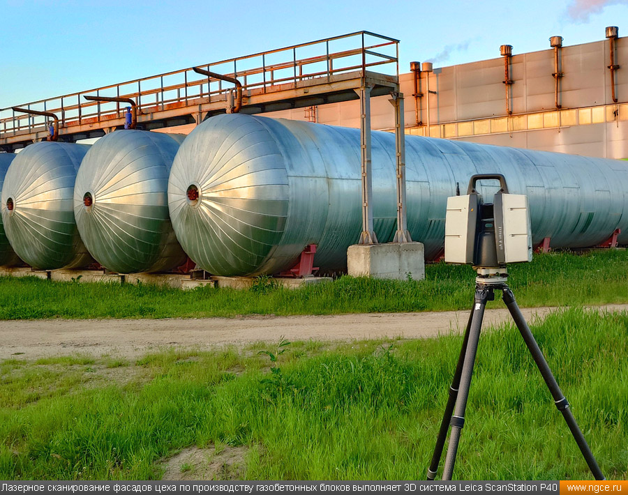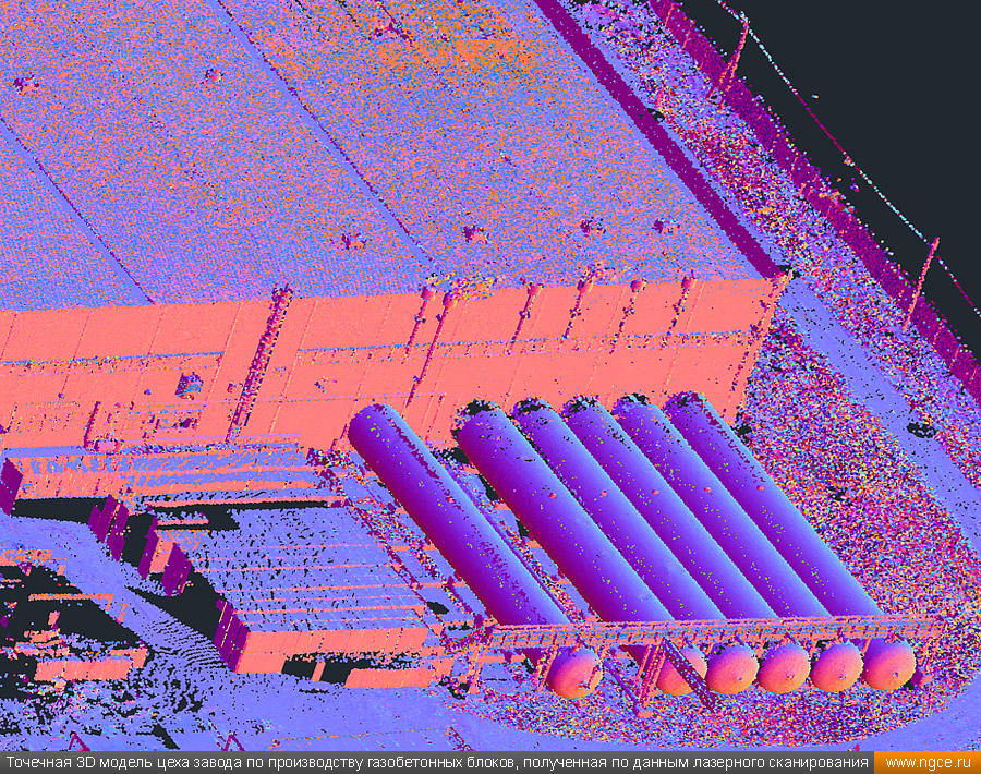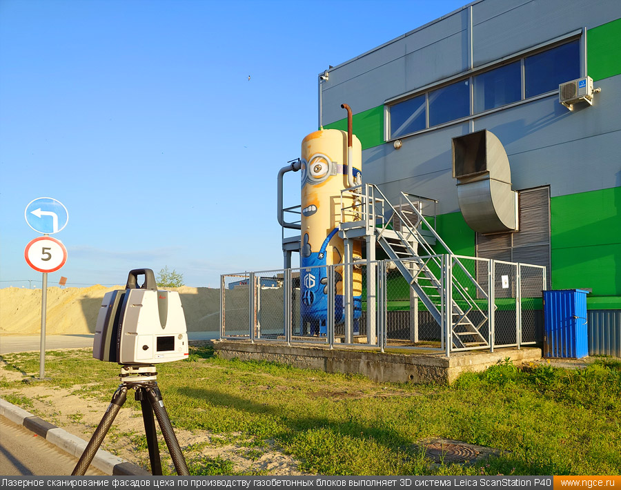 ![]() Инженерное предприятие «НГКИ» в сжатые сроки выполнило проект по обмерным работам крупного цеха на заводе по производству газобетонных блоков в городе Усть-Лабинск в Краснодарском крае для целей актуализации проектной документации и подготовки проекта реконструкции и расширения производства. Точные 3D обмеры цеха завода методом лазерного сканирования для реконструкцииК нам обратились представители проектной организации, которой была поручена разработка проекта реконструкции, модернизации и расширения большого цеха завода по производству газобетонных блоков в городе Усть-Лабинск в Краснодарском крае, с просьбой произвести 3D обмеры цеха и предоставить их специалистам точную обмерную модель объекта. 3D обмеры цеха площадью около 12000 квадратных метров были осуществлены нашими инженерами по технологии лазерного сканирования с помощью системы Leica ScanStation P40. Сканирующая 3D система Leica ScanStation P40 — это высокопроизводительный и высокоточный прибор с большой скоростью лазерного сканирования, которая составляет 1 миллион измерений в секунду. Данный 3D сканер идеально подходит для производства сверхподробных съёмок различных объектов сложной формы, в том числе находящихся на большом удалении. Система способна обеспечивать сведение к минимуму влияние шума на сигнал 3D сканера даже при проведении измерений на максимально возможной дальности. У 3D лазерного сканера Leica ScanStation P40 есть свои существенные преимущества, которые крайне востребованы: так, этот прибор имеет очень большую дальность измерений (до 270 метров) практически без потери точности, а также возможность ручного выбора и лазерного сканирования отдельных областей в режиме повышенной плотности, что особенно полезно при обмерах участков цеха с большим скоплением различного технологического оборудования. За шесть рабочих дней нашими специалистами были отсканированы фасады и кровля производственного цеха завода, а также всё внутреннее пространство, включая склады сырья и административные помещения. Работы по лазерному сканированию осуществлялись без остановки производства и осложнялись передвижением техники, запылённостью, а также высокими температурами в отдельных участках цеха. Несмотря на все сложности, лазерный сканер Leica ScanStation P40, работающий в большом диапазоне температур от -20°C до +50°C и имеющий показатель пылевлагозащиты IP54, отлично справился с задачей. Высокая дальность работы сканера позволила успешно и с высокой плотностью отсканировать участки цеха, на которых производилась отгрузка материалов с площадок, находящихся на верхних уровнях. Всего на полевом этапе выполнения работ по данному проекту нашими специалистами было сделано 445 сканов. Подготовка обмерной точечной 3D модели по данным лазерного сканированияУравнивание и сшивка полученных сканов в единую точечную 3D модель, осуществлённые уже на камеральном этапе работ, заняли четыре рабочих дня. Также на камеральной стадии работ нами была произведена очистка облаков точек от шумов и посторонних объектов. В результате всех выполненных работ нашими специалистами было получено сшитое плотное облако точек (точечная 3D модель) цеха завода по производству газобетонных блоков в формате Autodesk ReCAP (RCP) с возможностью просмотра панорам с каждой станции лазерного сканирования. Инженерная компания 