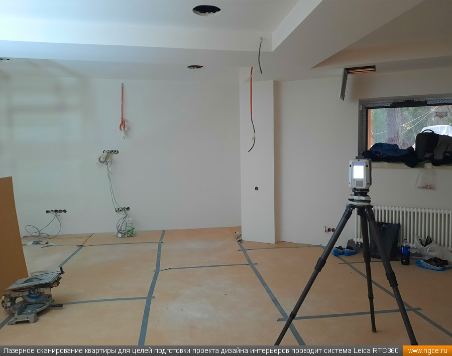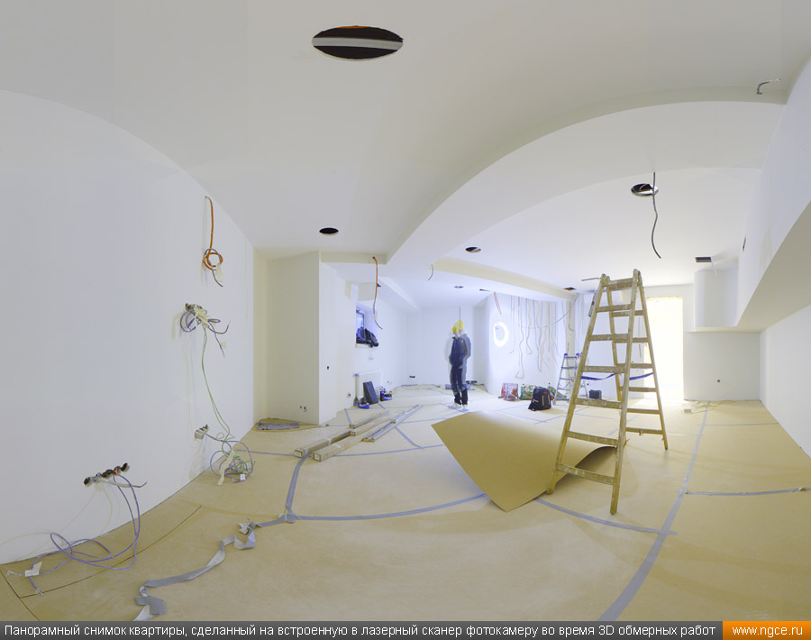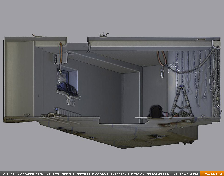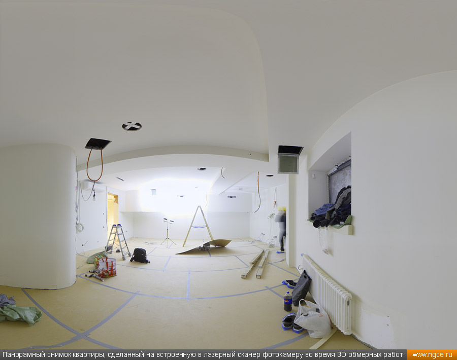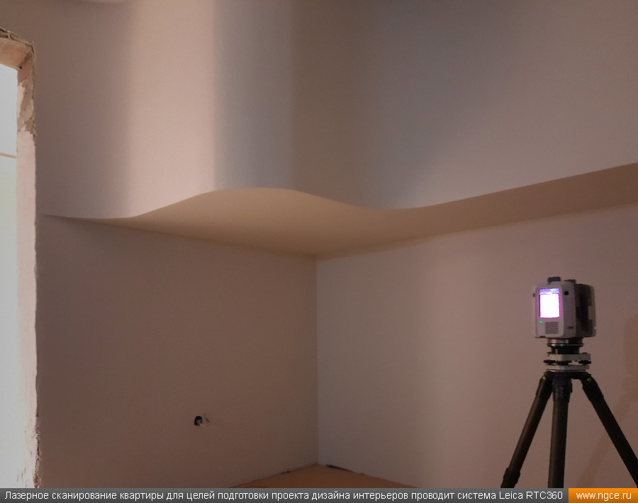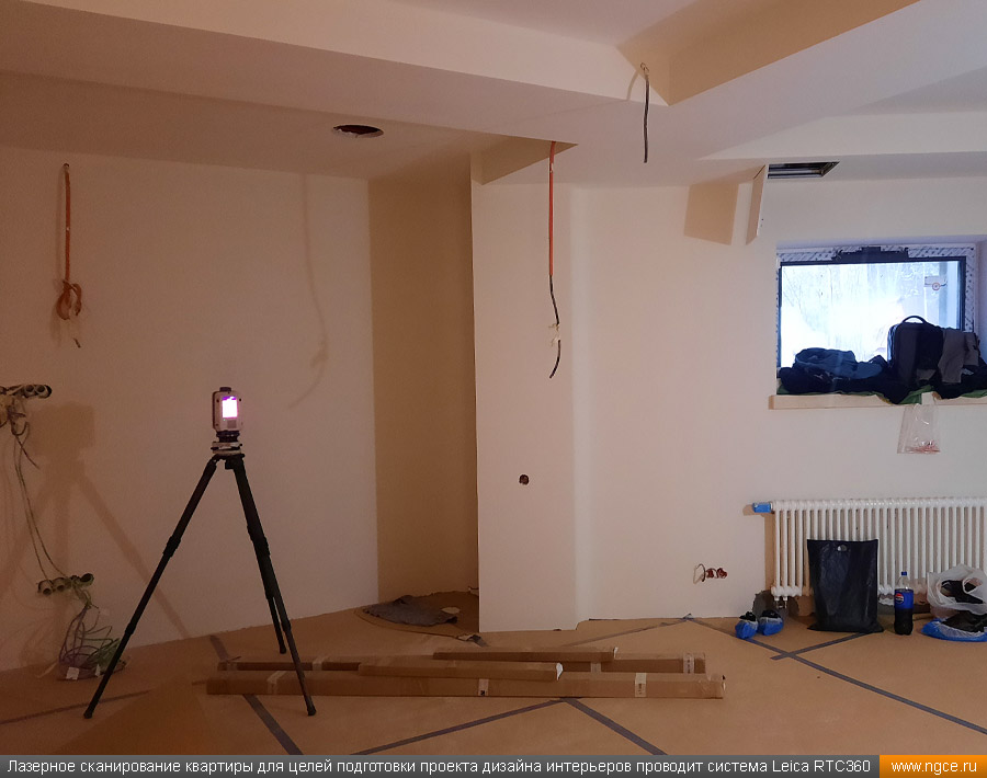 Специалистами инженерной компании «НГКИ» был оперативно выполнен проект по 3D обмерам и построению точной трёхмерной модели квартиры в Москве с отображением всех инженерных коммуникаций. Заказчиком работ выступила одна из московских студий дизайна интерьеров. Дизайнеры обратились в нашу компанию, поскольку мы имеем очень богатый опыт проведения точных 3D обмеров помещений и построения их обмерных 3D моделей для целей подготовки проектов дизайна интерьеров. 3D обмеры квартиры методом лазерного сканирования для создания обмерной моделиКвартира, в которой мы должны были произвести 3D обмеры, оказалась довольно необычной формы и конфигурации, но зато на момент проведения нами трёхмерной лазерной съёмки она была практически пустой, без мебели, техники и прочих бытовых предметов, и это весьма существенно сократило время на полевой этап и упростило нашу задачу по обработке данных обмерных работ и 3D моделированию, ведь поскольку для успешной разработки дизайн-проекта критически важны не только высокая точность 3D модели помещения, но и указание расположения всех коммуникаций в этом помещении: освещение, розетки, радиаторы, кондиционеры, вентиляция — всё это обязательно отображается на итоговой обмерной 3D модели. Обмерные работы на данном объекте были произведены методом лазерного сканирования при помощи 3D системы Leica RTC360 с использованием встроенной фотокамеры. Панорамы, полученные посредством съёмки на встроенную в трёхмерный лазерный сканер цифровую фотокамеру, хорошо помогают в процессе построения 3D модели быстрее и лучше распознавать в облаке точек различные элементы. Трёхмерный лазерный сканер Leica RTC360 — высокоточный прибор, дающий возможность в автоматическом режиме проводить до 2 миллионов измерений в секунду, при этом точность каждого единичного измерения для определения пространственных координат составляет 1 мм. Важной особенностью этого 3D сканера является автоматическое выравнивание точно по горизонту на аппаратном уровне. Сам лазерный сканер может быть наклонён физически, а результаты измерений всё равно получаются точно выравненными по горизонту. Эта функция очень сильно экономит время при перестановке 3D сканера. Полевой этап работ, на котором было произведено лазерное сканирование квартиры, занял всего три часа, после чего наши специалисты перешли к камеральной стадии работ. Построение обмерной 3D модели квартиры со всеми коммуникациями для дизайнеровНа камеральном этапе работ по проекту была проведена сшивка облаков точек лазерного сканирования и их очистка от всех посторонних шумов и лишних объектов. Далее наши специалисты приступили к построению точной обмерной 3D модели квартиры со всеми коммуникациями, которая и требовалась дизайнерам интерьеров. На обработку данных 3D лазерного сканирования, сшивку сканов в единое облако точек и построение по этому облаку точек точной обмерной 3D модели квартиры был затрачен суммарно один рабочий день. Заказчику были переданы сшитые и очищенные облака точек лазерного сканирования в формате RCP с возможностью просмотра 3D панорам с каждой станции лазерного сканирования, а также точная 3D модель квартиры, построенная по данным проведённых обмерных работ. Заказчик остался очень доволен всеми полученными результатами и приступил к разработке проекта дизайн