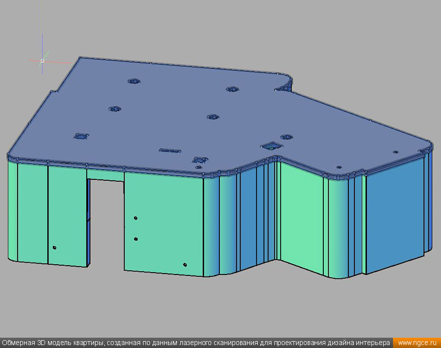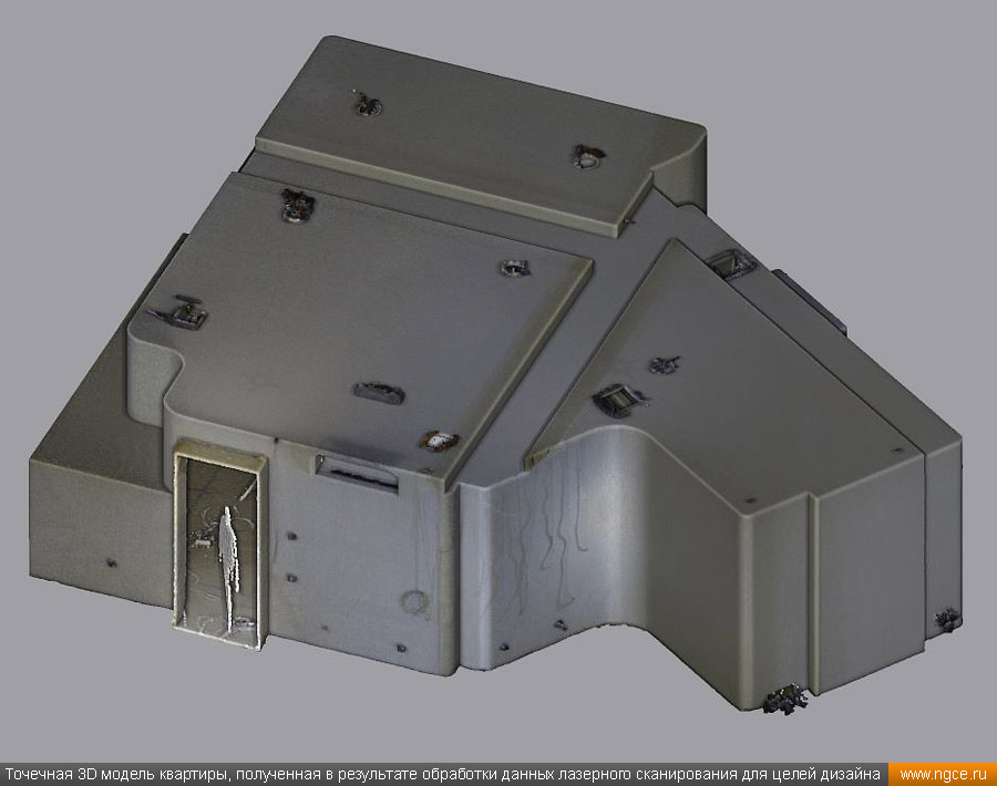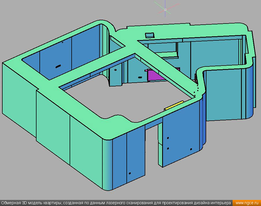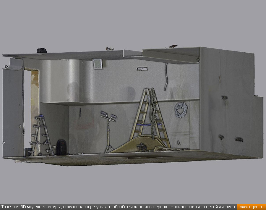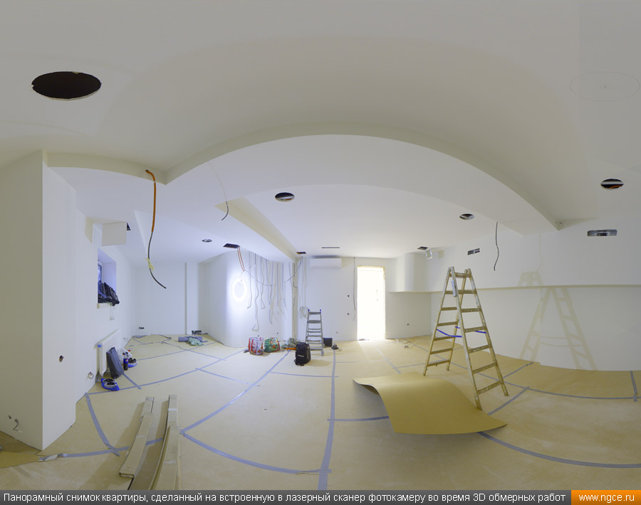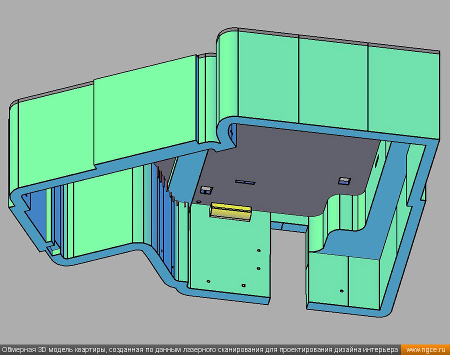 Специалистами инженерной компании «НГКИ» был оперативно выполнен проект по 3D обмерам и построению точной трёхмерной модели квартиры в Москве с отображением всех инженерных коммуникаций. Заказчиком работ выступила одна из московских студий дизайна интерьеров. Дизайнеры обратились в нашу компанию, поскольку мы имеем очень богатый опыт проведения точных 3D обмеров помещений и построения их обмерных 3D моделей для целей подготовки проектов дизайна интерьеров. 3D обмеры квартиры методом лазерного сканирования для создания обмерной моделиКвартира, в которой мы должны были произвести 3D обмеры, оказалась довольно необычной формы и конфигурации, но зато на момент проведения нами трёхмерной лазерной съёмки она была практически пустой, без мебели, техники и прочих бытовых предметов, и это весьма существенно сократило время на полевой этап и упростило нашу задачу по обработке данных обмерных работ и 3D моделированию, ведь поскольку для успешной разработки дизайн-проекта критически важны не только высокая точность 3D модели помещения, но и указание расположения всех коммуникаций в этом помещении: освещение, розетки, радиаторы, кондиционеры, вентиляция — всё это обязательно отображается на итоговой обмерной 3D модели. Обмерные работы на данном объекте были произведены методом лазерного сканирования при помощи 3D системы Leica RTC360 с использованием встроенной фотокамеры. Панорамы, полученные посредством съёмки на встроенную в трёхмерный лазерный сканер цифровую фотокамеру, хорошо помогают в процессе построения 3D модели быстрее и лучше распознавать в облаке точек различные элементы. Трёхмерный лазерный сканер Leica RTC360 — высокоточный прибор, дающий возможность в автоматическом режиме проводить до 2 миллионов измерений в секунду, при этом точность каждого единичного измерения для определения пространственных координат составляет 1 мм. Важной особенностью этого 3D сканера является автоматическое выравнивание точно по горизонту на аппаратном уровне. Сам лазерный сканер может быть наклонён физически, а результаты измерений всё равно получаются точно выравненными по горизонту. Эта функция очень сильно экономит время при перестановке 3D сканера. Полевой этап работ, на котором было произведено лазерное сканирование квартиры, занял всего три часа, после чего наши специалисты перешли к камеральной стадии работ. Построение обмерной 3D модели квартиры со всеми коммуникациями для дизайнеровНа камеральном этапе работ по проекту была проведена сшивка облаков точек лазерного сканирования и их очистка от всех посторонних шумов и лишних объектов. Далее наши специалисты приступили к построению точной обмерной 3D модели квартиры со всеми коммуникациями, которая и требовалась дизайнерам интерьеров. На обработку данных 3D лазерного сканирования, сшивку сканов в единое облако точек и построение по этому облаку точек точной обмерной 3D модели квартиры был затрачен суммарно один рабочий день. Заказчику были переданы сшитые и очищенные облака точек лазерного сканирования в формате RCP с возможностью просмотра 3D панорам с каждой станции лазерного сканирования, а также точная 3D модель квартиры, построенная по данным проведённых обмерных работ. Заказчик остался очень доволен всеми полученными результатами и приступил к разработке проекта дизайн
