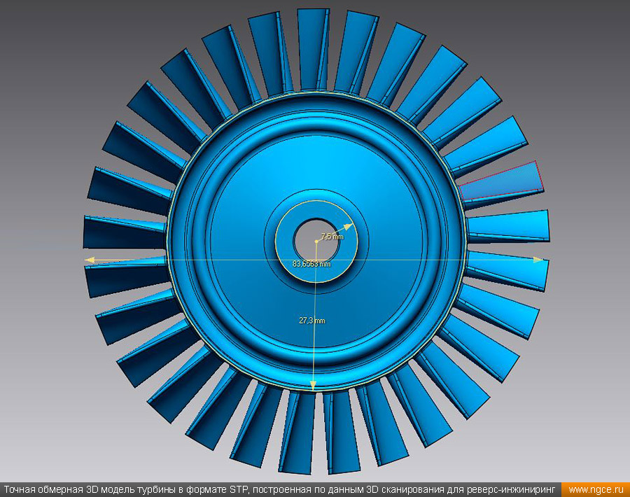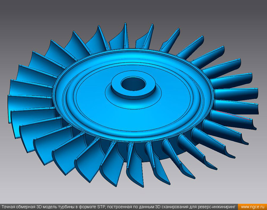 Специалистами инженерного предприятия «НГКИ» реализован небольшой проект по 3D сканированию и построению точной обмерной твердотельной 3D модели детали «турбина». Высокоточные обмерные работы и 3D моделирование были проведены для целей дальнейшего проектирования и изготовления такой детали методом реверс-инжиниринга. Высокоточные 3D обмеры детали «турбина» для реверс-инжинирингаДеталь представляла из себя небольшую металлическую турбину диаметром менее 10 см. Основной особенностью данного проекта являлось то, что лазерное сканирование турбины было необходимо осуществить с максимальной детализацией в процессе съёмки и высочайшей точностью, чтобы впоследствии на камеральном этапе проведения работ получить практически идеально точную 3D модель детали. Обмеры детали были произведены нашим портативным ручным высокоточным 3D сканером ScanTech KSCAN-Magic, который обеспечивает точность до 0,02 мм и великолепную детализацию. Эта современная система ориентирована на высокоточную оцифровку объектов 3D сканирования, оснащается лазерами двух разных типов (синий и красный) и обеспечивает прецизионную точность данных измерений. 3D сканирование турбины выполнялось с максимальным разрешением данного высокоточного 3D сканера — 0,02 мм. Обработка данных 3D сканирования, получение STL модели и построение STP моделиВысокоточное 3D сканирование детали заняло около двух часов, после чего была произведена обработка результатов данных измерений и получена трёхмерная триангуляционная модель турбины в формате STL, что тоже потребовало совсем немного времени. Скриншоты триангуляционной 3D модели турбины в формате STL, полученной в результате обработки данных 3D сканирования, вы можете посмотреть ниже. На следующей стадии камеральных работ по триангуляционной модели была построена твердотельная 3D модель детали в формате STP. Скриншоты точной обмерной твердотельной 3D модели турбины в формате STP, построенной по данным 3D сканирования, вы можете посмотреть ниже. Контроль точности 3D модели детали в формате STPДля контроля точности готовых 3D моделей нами применялся программный модуль построения карты отклонений, который показал, что отклонения построенной 3D модели минимальны по сравнению с исходной деталью. Инженерная компания «НГКИ» имеет большой опыт высокоточных обмеров различных деталей, элементов декора, других мелких и средних объектов высокоточными сканерами. Мы занимаемся обмерами для решения задач реверс-инжиниринга (reverse engineering) деталей и изделий промышленного производства, ювелирных изделий, сувениров, элементов декора, а также задач для реставраторов, скульпторов, музейных работников, для сохранения данных об объектах историко-культурного наследия. Кроме того, наши высокоточные 3D сканеры применяются в метрологии, архитектуре, контроле качества, медицине, научных исследованиях, разработке разнообразных приложений VR/AR, ракетно-космической отрасли, авиа- и автомобилестроении, ИТ-сфере, медицине, криминалистике, кинематографе, моде, образовании, производстве товаров народного потребления, а также целом ряде других сфер и направлений деятельности. Более подробное описание всех видов выполняемых нами работ в данном сегменте рынка вы можете найти на следующей странице раздела «Услуги» нашего сайта: — «3D сканирование и построение обмерных мо