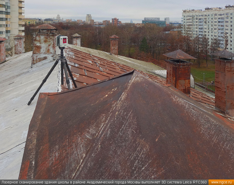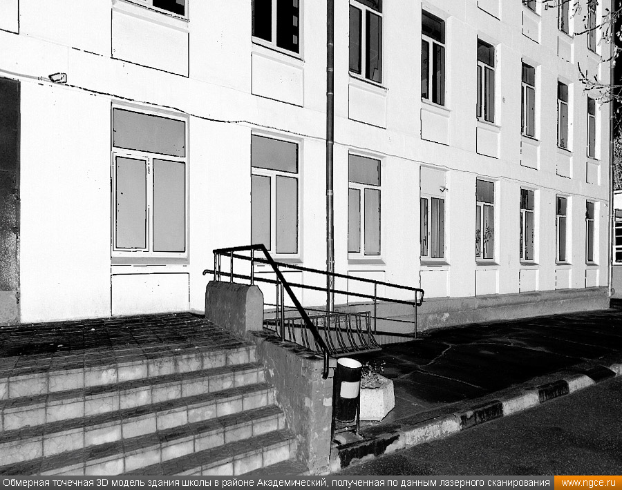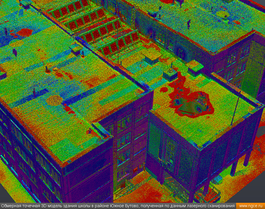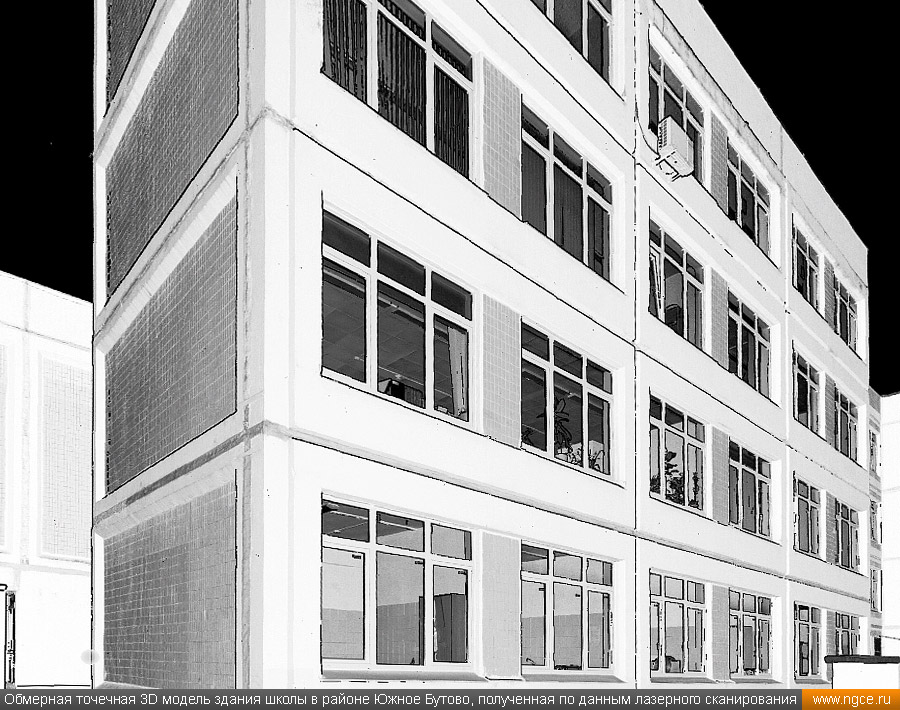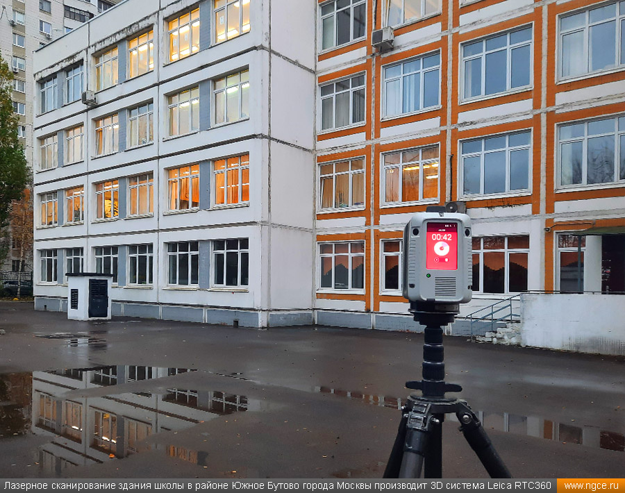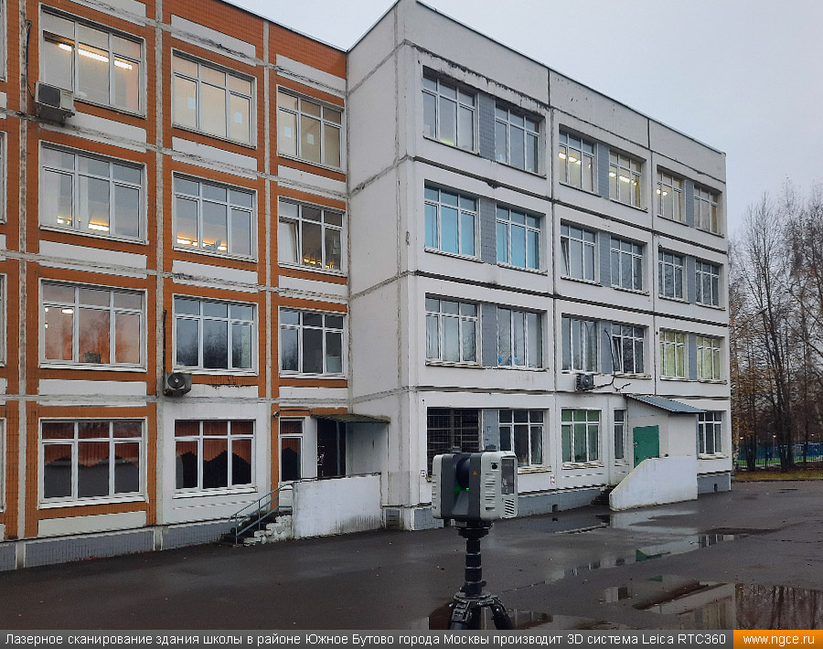Инженерная компания «НГКИ» выполнила проект по 3D лазерному сканированию зданий двух общеобразовательных школ, расположенных на территории города Москвы в районах Академический и Южное Бутово, с целью актуализации проектной документации для подготовки проектов их капитального ремонта в рамках масштабной государственной программы. Обмерные работы для целей проектирования капитального ремонта и реконструкцииОбмерные работы на обоих объектах съёмки были осуществлены нашими специалистами по технологии трёхмерного лазерного сканирования при помощи 3D системы Leica RTC360. Трёхмерный лазерный сканер Leica RTC360 — высокоточный прибор, дающий возможность в автоматическом режиме проводить до 2 миллионов измерений в секунду, при этом точность каждого единичного измерения для определения пространственных координат составляет 1 мм. Важной особенностью этого 3D сканера является автоматическое выравнивание точно по горизонту на аппаратном уровне. Сам лазерный сканер может быть наклонён физически, а результаты измерений всё равно получаются точно выравненными по горизонту. Эта функция очень сильно экономит время при перестановке 3D сканера. Лазерному сканированию подлежали фасады, кровли и лестничные пролёты, поэтому нашим специалистам удалось выполнить все полевые работы в кратчайшие сроки — за два рабочих дня, то есть по одному дню на здание каждой школы. По результатам проведённого лазерного сканирования зданий двух школ суммарно нами было 215 отдельных высококачественных сканов с высокой плотностью. Создание точных обмерных 3D моделей зданий школ по данным лазерного сканированияПосле оперативного завершения полевого этапа работ, на котором было произведено лазерное сканирование зданий двух московских школ в двух разных районах города, наши специалисты приступили к выполнению камерального этапа работ, на котором было необходимо осуществить обработку и уравнивание полученных сканов, а также подготовить обмерные точечные 3D модели зданий школ. По результатам выполненного трёхмерного лазерного сканирования суммарно нашими специалистами было получено и обработано 215 сканов, которые на камеральном этапе были очищены от посторонних шумов и ненужных объектов, а затем сшиты в облака точек 3D лазерного сканирования. По итогам всех осуществлённых нами работ Заказчику были переданы обмерные точечные 3D модели зданий обеих школ в стандартном формате RCP (Autodesk ReCAP). Заказчик остался очень доволен высоким качеством и оперативностью выполненной нами работы, а его специалисты немедленно приступили к использованию предоставленной им нашими инженерами точной и актуальной обмерной документации для целей подготовки проектов капитального ремонта школ. Технология 3D лазерного сканирования в очередной раз подтвердила, что она позволяет в кратчайшие сроки получить актуальную обмерную документацию зданий с очень высокой точностью, которая идеально подходит для разработки проектов капитального ремонта и реконструкции. Обмерные 3D модели зданий школ, полученные по результатам лазерного сканированияНиже вы можете посмотреть на примеры итоговых точечных обмерных 3D моделей зданий школ, полученных нашими специалистами в результате обработки данных выполненного лазерного сканирования для целей подготовки проектов капитального ремонт