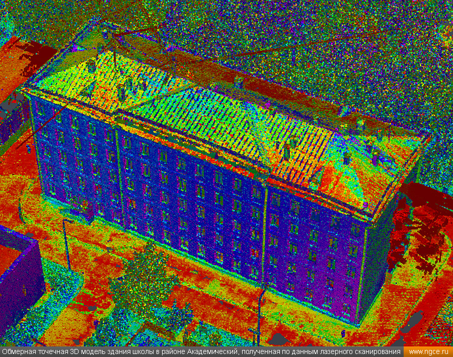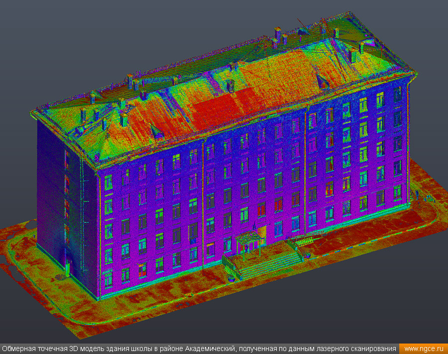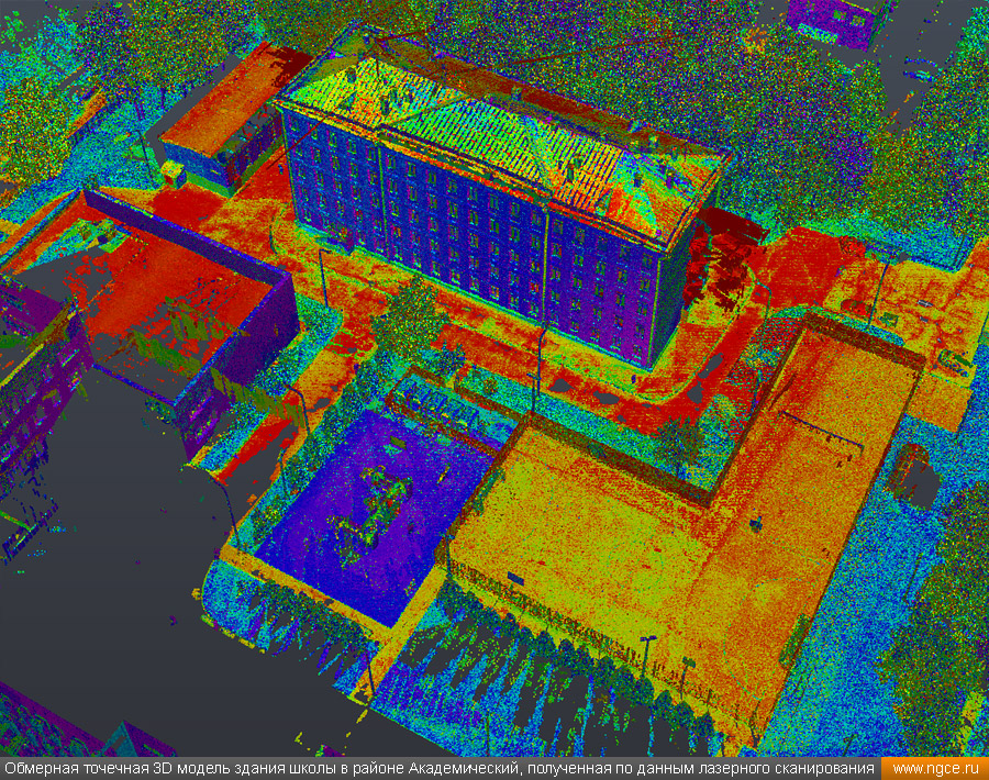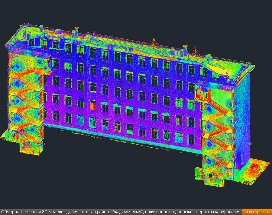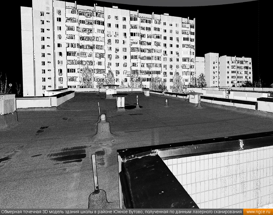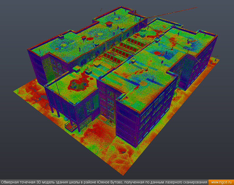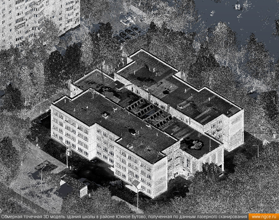Инженерная компания «НГКИ» выполнила проект по 3D лазерному сканированию зданий двух общеобразовательных школ, расположенных на территории города Москвы в районах Академический и Южное Бутово, с целью актуализации проектной документации для подготовки проектов их капитального ремонта в рамках масштабной государственной программы. Обмерные работы для целей проектирования капитального ремонта и реконструкцииОбмерные работы на обоих объектах съёмки были осуществлены нашими специалистами по технологии трёхмерного лазерного сканирования при помощи 3D системы Leica RTC360. Трёхмерный лазерный сканер Leica RTC360 — высокоточный прибор, дающий возможность в автоматическом режиме проводить до 2 миллионов измерений в секунду, при этом точность каждого единичного измерения для определения пространственных координат составляет 1 мм. Важной особенностью этого 3D сканера является автоматическое выравнивание точно по горизонту на аппаратном уровне. Сам лазерный сканер может быть наклонён физически, а результаты измерений всё равно получаются точно выравненными по горизонту. Эта функция очень сильно экономит время при перестановке 3D сканера. Лазерному сканированию подлежали фасады, кровли и лестничные пролёты, поэтому нашим специалистам удалось выполнить все полевые работы в кратчайшие сроки — за два рабочих дня, то есть по одному дню на здание каждой школы. По результатам проведённого лазерного сканирования зданий двух школ суммарно нами было 215 отдельных высококачественных сканов с высокой плотностью. Создание точных обмерных 3D моделей зданий школ по данным лазерного сканированияПосле оперативного завершения полевого этапа работ, на котором было произведено лазерное сканирование зданий двух московских школ в двух разных районах города, наши специалисты приступили к выполнению камерального этапа работ, на котором было необходимо осуществить обработку и уравнивание полученных сканов, а также подготовить обмерные точечные 3D модели зданий школ. По результатам выполненного трёхмерного лазерного сканирования суммарно нашими специалистами было получено и обработано 215 сканов, которые на камеральном этапе были очищены от посторонних шумов и ненужных объектов, а затем сшиты в облака точек 3D лазерного сканирования. По итогам всех осуществлённых нами работ Заказчику были переданы обмерные точечные 3D модели зданий обеих школ в стандартном формате RCP (Autodesk ReCAP). Заказчик остался очень доволен высоким качеством и оперативностью выполненной нами работы, а его специалисты немедленно приступили к использованию предоставленной им нашими инженерами точной и актуальной обмерной документации для целей подготовки проектов капитального ремонта школ. Технология 3D лазерного сканирования в очередной раз подтвердила, что она позволяет в кратчайшие сроки получить актуальную обмерную документацию зданий с очень высокой точностью, которая идеально подходит для разработки проектов капитального ремонта и реконструкции. Обмерные 3D модели зданий школ, полученные по результатам лазерного сканированияНиже вы можете посмотреть на примеры итоговых точечных обмерных 3D моделей зданий школ, полученных нашими специалистами в результате обработки данных выполненного лазерного сканирования для целей подготовки проектов капитального ремонт