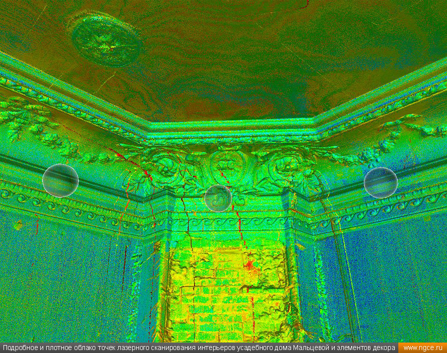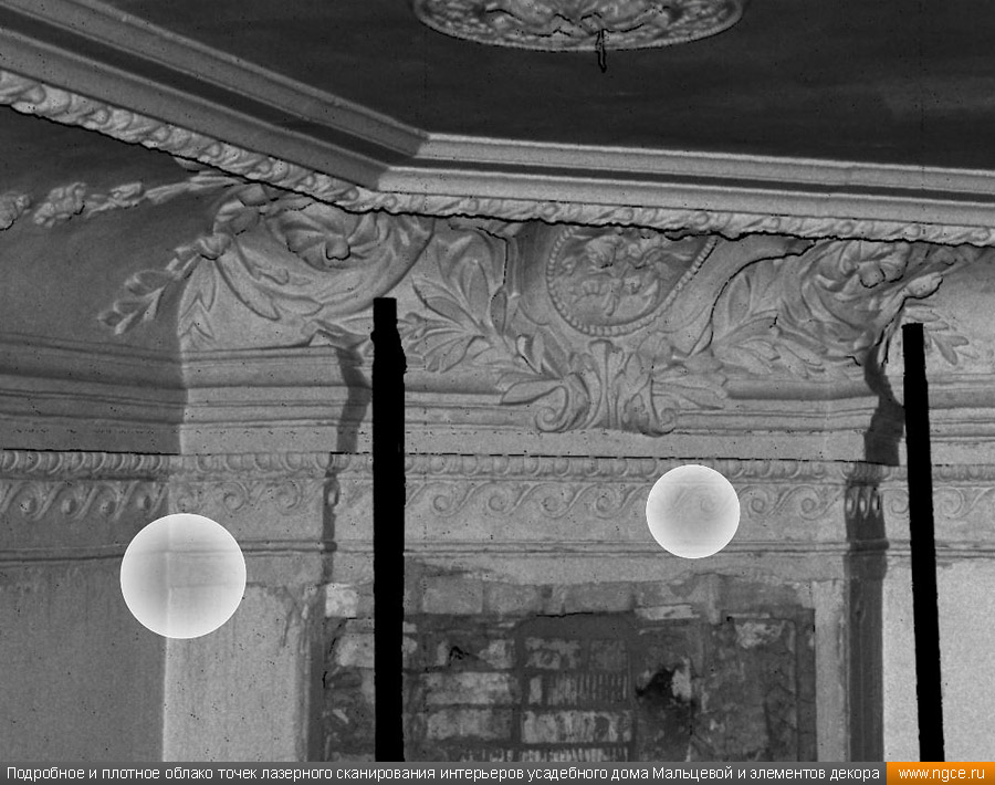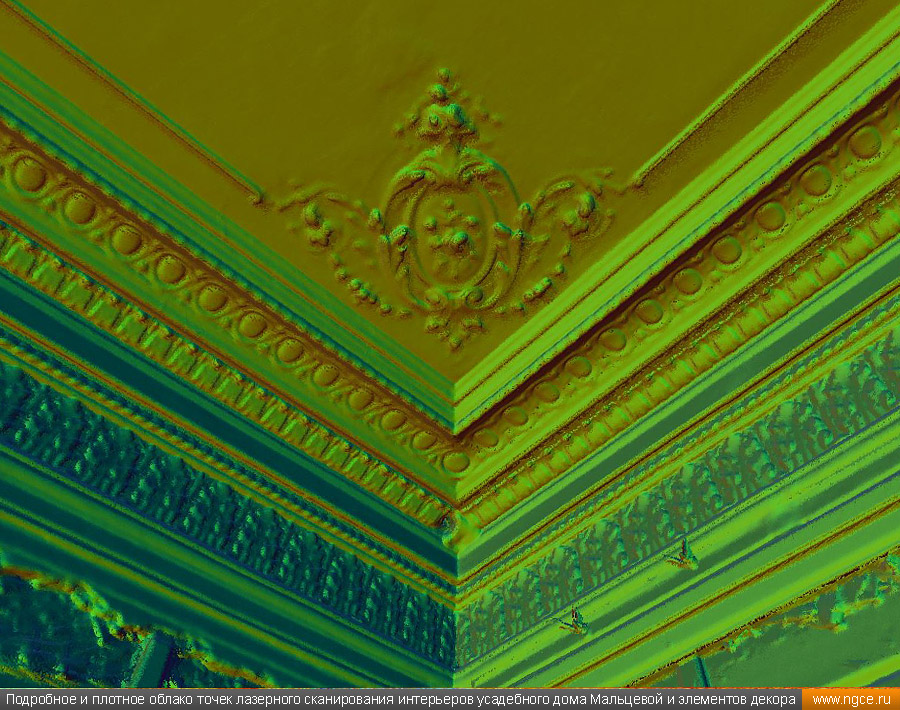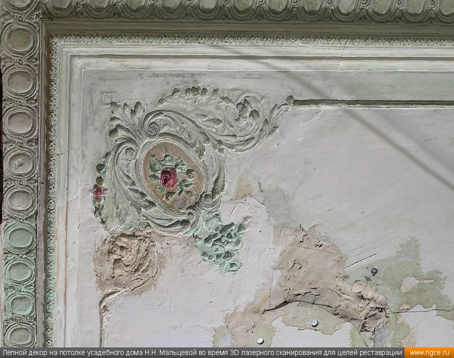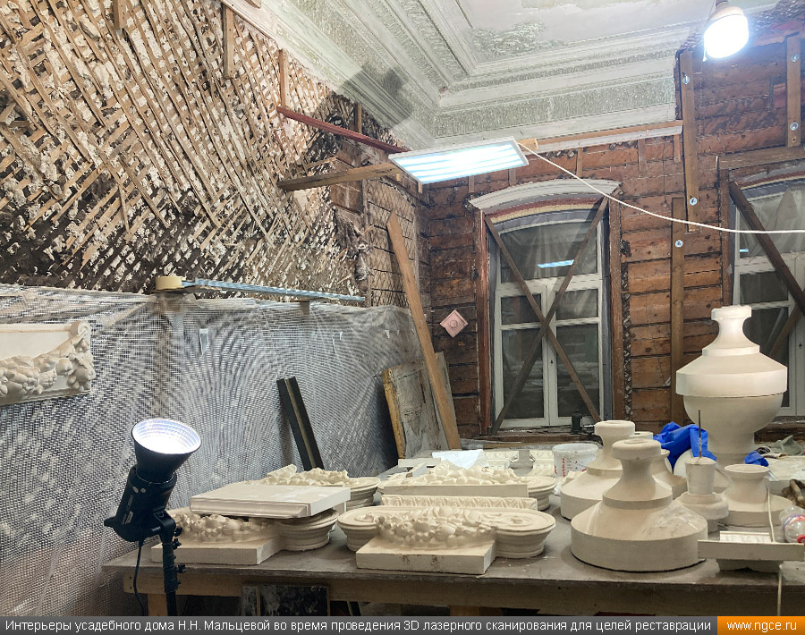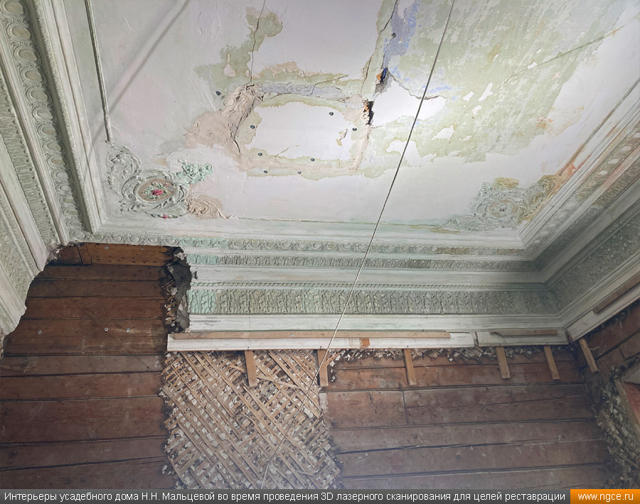 Лазерное сканирование интерьеров и декора усадебного дома Мальцевой в Москве для подготовки проекта реставрации